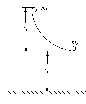 的球沿光滑弧形轨道从距平台高为h处由静止开始下滑, 滑至平台上与球m