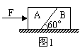 例1 如图1所示,质量均为M的两个木块A、B在水平力F的作用下,一起沿光滑的水平面运动,A与B的接触面光滑,且与水平面的夹角为60°,求使A与B一起运动时的水平力F的范围。