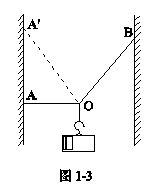 4、如图1-3所示,物体悬于两墙之间,轻绳之一OA为水平,当更换OA绳,使A点上移,但保持O点位置不动,则A点上移到A′的过程中,绳AO的拉力( )