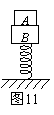 如图11,竖直固定的轻弹簧,上端与质量为3.0kg的物块B相连接. 另一个质量为1.0kg的物块A放在B上. 先用竖直向下的力F压A,使弹簧被压缩一定量,系统静止. 然后突然撤去力F,A、B共同向上运动一段距离后将分离. 分离后A又上升了0.20m到达最高点,此时B的速度方向向下,且弹簧恰好为原长. 则从A、B分离到A上升到最高点过程中,弹簧对B