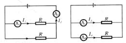 如图所示的两种电路中,电源相同(内阻不计),各电阻器阻值相等,各电流表的内阻相等且不可忽略不计,电流表A1、A2、A3和A4读出的电流值分别为I1、I2、I3和I4,下列关系式中正确的是( )