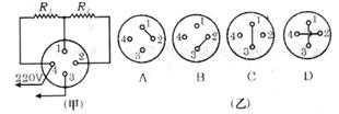 13. 有一只家用电熨斗,其电路结构如图(甲)所示,在正常工作时,改变内部接线方式可以使电熨斗获得低、中、高三个不同的温度档,(乙)所示是它四种不同的连线方式,其中获得低档温度的是( )