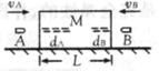 在光滑的水平桌面上静止着长为L的方木块M,今有A、B两颗子弹沿同一水平轴线分别为vA、vB从M的两侧同时射入木块.A、B在木块中嵌入的深度分别为dA、dB,且(dA + dB)