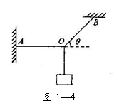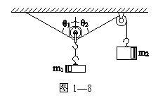 如图1-8所示的装置中,绳子与滑轮的质量不计,摩擦不计,两个物体的质量分别为m1和m2 ,动滑轮两边的绳子与竖直方向的夹角分别为θ1和θ2 ,装置处于静止状态,则:( )