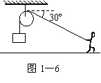 如图1-6所示,人的质量m=44.6千克,用绳通过滑轮拉质量M=20千克的物体。不计绳的质量和滑轮摩擦。当人拉绳向右走一步,仍保持平衡,则下列判断正确的是