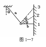 用与竖直方向成θ角的倾斜轻绳子a和水平轻绳子b共同固定一个小球,这时绳b的拉力为F1。现在保持小球在原位置不动,使绳子b在原竖直平面内, 逆时针转过θ角固定,绳b拉力变为F2;再转过θ角固定,绳b拉力变为F3,如图1-7则 :( )