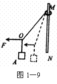 如图1-9所示轻绳一端系在质量为m的物体A上,另一端系在一个套在粗糙竖直杆MN的圆环上。现用水平力F拉住绳子上一点O,使物体A从图2中实线位置缓慢下降到虚线位置,但圆环仍持在原来位置不动。则在这一过程中,环对杆的摩擦力F1和环对杆的压力F2的变化情况是:( )