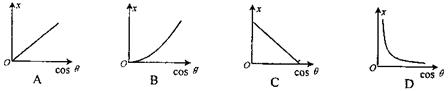 10.如图1-10所示,一根轻弹簧上端固定在O点,下端栓一个钢球P,球处于静止状态。现对球施加一个方向向右的外力F,使球缓慢偏移,在移动中的每一个时刻,都可以认为钢球处于平衡状态。若外力F方向始终水平,移动中弹簧与竖直方向的夹角θ<90°且弹簧的伸长量不超过弹性限度,则下面给出的弹簧伸长量x与cosθ的函数关系图象中,最接近的是:( )