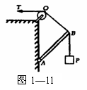 如图1-11所示,绳与杆均不计重力,所承受弹力的最大值一定,A端用绞链固定,滑轮O在A点正上方(滑轮大小及摩擦均可忽略),B端吊一重物P,现施拉力T将B缓慢上拉(均未断),在杆达到竖直前,下列说法中正确的是: ( )