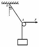 17. (6分)如图所示,一个不计重力的小滑轮,用一段轻绳OA悬挂在天花板上的O点,另有一段轻绳跨过该定滑轮,一端连结一个重为20 N的物体,在轻绳的另一端施加一水平拉力F,使物体