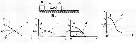 向着A物块运动。当物块与弹簧作用时,两物块在同一条直线上运动。请识别关于B物块与弹簧作用过程中,两物块的