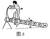 图6为健身用的“跑步机”.质量为m的运动员踩在与水平面成α角的静止皮带上,运动员用力向后蹬皮带.皮带运动过程中受到阻力恒为Ff,使皮带以速度V匀速向后运动,则在运动的过程中,下列说法正确的是: