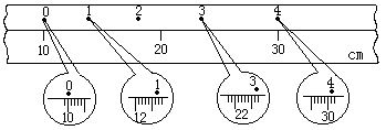 12.在测定匀变速直线运动的加速度的实验中, 使用打点计时器进行相关测量, 实验中得到一条纸带如图,0,1,2,…是选用的计数点, 每相邻的两计数点间还有3个打出的点未画出。图中还画出了用米尺进行测量的情况。读出图中各测量点的读数。0:________,1:________,3:________,4:________。由图中数据能求出的物体的加速度为________m/s2.