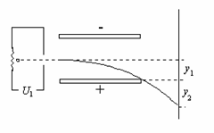 示波器的示意图如图,金属丝发射出来的电子被加速后从金属板的小孔穿出,进入偏转电场。电子在穿出偏转电场后沿直线前进,最后打在荧光屏上。设加速电压U1=1640V,偏转极板长l=4cm,偏转板间距d=1cm,当电子加速后从两偏转板的中央沿板平行方向进入偏转电场。(1)偏转电压为多大时,电子束打在荧光屏上偏转距离最大?(2)如果偏转板右端到荧光屏的距离L=20cm,则电子束最大偏转距离为多少?