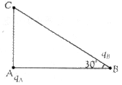 ,现在A、B两点分别放置点电荷qA、qB,测得C点场强方向与BA方向一致,则qA带__________,qB带________,两点电荷电量大小之比qA∶qB为_____________。