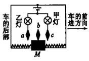 某仪器内部电路如图所示,其中M是一个质量较大的金属块,左右两端分别与金属丝制作的弹簧相连,并套在光滑水平细杆上,a、b、c三块金属片的间隙很小(b固定在金属块上)。当金属块处于平衡时两根弹簧均处于原长状态。若将该仪器固定在一辆汽车上,则下列说法正确的是