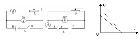 用一只电流表和一只电压表测电池的电动势和内电阻的实验电路,有如图所示的a、b两种,采用a图测定E和r时产生的系统误差,主要是由于 。采用b图测定E和r时产生的系统误差,主要是由于