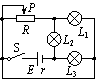 3. 如图所示,电路中的电源的电动势为E、内电阻为r,开关S闭合后,当滑动变阻器的滑片P从滑动变阻器R的中点位置向左滑动时,小灯泡L1、L2、L3的亮度变化情况是 A.L1灯变亮,L2灯变暗,L3灯变亮 B.L1灯变暗,L2灯变亮,L3灯变暗 C.L1、L2两灯都变亮,L3灯变暗 D.L1、L2两灯都变暗,L3灯变亮