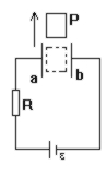 11. ( 2分) 电容器C、电阻器R和电源ε连接成如图所示的电路, 当把绝缘板P从电容器极板a、b之间拔出的过程中, 电路里