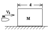 16. ( 3分) 水平光滑桌面上放有质量M=1.8kg、厚d=0.2m的一木块.一颗质量m=20g、以水平速度v1=500m/s飞行的子弹穿过木块后,测得木块获得的速度u=2m/s(如图),则子弹在穿透木块过程中木块移动的距离为_____m.