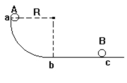 圆弧导轨, bc为紧接的水平直导轨, 两者均光滑. 一个质量m1的小球A, 以初速v0= 3m/s从导轨顶端下滑, 与静止于水平轨道上质量为m2的小球B发生弹性正碰, 碰后, 小球A恰能返回最高点, 则两球质量比