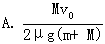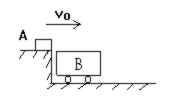 质量为m的物体A以速度v0在平台上运动, 滑到与平台等高、质量为M的静止小车B上, 小车B放在光滑水平地面上(如图), 物体A与B之间动摩擦因数为μ, 不计A的体积, 为使A不致滑出小车B, 小车B的长度L至少应为
