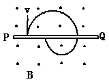 12. 如图所示,PQ是匀强磁场中的一片薄金属片,其平面与磁场方向平行,一个α粒子从某点以与PQ垂直的速度v射出,动能是E,射出后α粒子的运动轨迹如图所示.今测得它在金属片两边的轨迹半径之比为10:9,若在穿越板的过程中粒子受到的阻力大小及电量恒定,则:( )