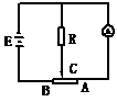 如图所示,滑动变阻器AB的总阻值与图中电阻R的阻 值相等,电源的电动势为E,内阻不计,当滑动触头C从右端A点开始一直滑到B点为止的过程中,下列说法正确的是( )