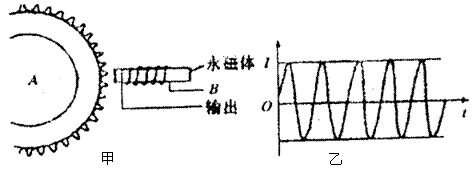 13.(7分)现代汽车在制动时,有一种ABS系统,它能阻止制动时车轮抱死变为纯滑动。这种滑动不但制动效果不好,而且易使车辆失去控制。为此需要一种测定车轮是否还在转动的装置。如果检测出车辆不再转动,就会自动放松制动机构,让轮子仍保持缓慢转动状态。这种检测装置称为电磁脉冲传感器,如图甲,B是一根永久磁铁,外面绕有线圈,它的左端靠近一个铁质齿轮,齿轮与转动的车轮是同步的。图乙是车轮转动时输出电流随时间变化的图象。