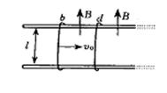 20.(13分)两根足够长的固定的平行金属导轨位于同一水平面内,两导轨间的距离为l,导轨上面横放着两根导体棒ab和cd,构成矩形回路,如图5所示,两根导体棒的质量皆为m,电阻皆为R,回路中其余部分的电阻可不计,在整个导轨平面内都有竖直向上的匀强磁场,磁感应强度为B,设两导体棒均可沿导轨无摩擦地滑行,开始时,棒cd静止,棒ab有指向棒cd的初速度υ0(见图)。若两导体棒在运动中始终不接触,