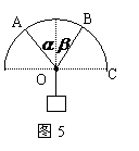 [例3] 上例中,根据三力平衡特点--任意2个力的合力与第3个力等大反向,作出如图4所示和矢量图,由三角形知识可得 ![]()