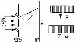 为中央亮条纹,右图乙换用另一颜色的单色光实验时观察到的条纹情况,