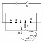 21.图为描绘电场中等势线的装置,图中A、N、C、D、B间距相等,其中A、B为金属圆柱。当电流从正接线柱流入G表时,其指针向正接线柱一侧偏转。