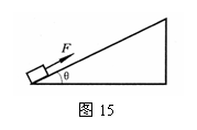(13分)如图15所示,在倾角θ=37°的足够长的固定的斜面底端有一质量m=1.0kg的物体.物体与斜面间动摩擦因数μ=0.25,现用轻细绳将物体由静止沿斜面向上拉动。拉力F=10.0N,方向平行斜面向上。经时间t=4.0s绳子突然断了,求:(1)绳断时物体的速度大小。(2)从绳子断了开始到物体再返回到斜面底端的运动时间?(sin37°=0.60 . cos37°=0.80,g=10m/s2)