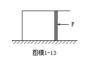 14.如图模1-13所示,光滑水平面上有一内、外壁都光滑的汽缸,汽缸质量为M,汽缸内有一个截面积为S,质量为m的活塞,密封着一体积为V0的理想气体,开始整个装置均处于平衡状态,现向活塞施加一水平力F,经过一段时间后,汽缸和活塞具有共同的加速度,此时汽缸内气体的体积____.(大气压强为p0,不计温度变化,且气体质量忽略.)