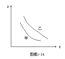 15.一位同学分别在两天用注射器做了两次“验证玻意耳定律的实验”,操作过程和方法都正确.根据实验数据他在同一p-V图像中画出了两条不重合的甲、乙两条双曲线,如图模1-14所示.产生这种情况的原因可能是:
