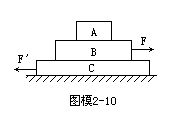 12.如图模2-10所示,在水平地面上叠放着A、B、C三个木块,