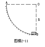 13.如图模2-11所示,质量为m的物体,沿半径为R的圆形轨道自A点滑下,A点的法线为水平方向,B点的法线为竖直方向,物体与轨道间的动摩擦因数为μ,物体滑至B点时的速度为v,此时物体所受的摩擦力为____.