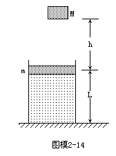 19.如图模2-14所示,在水平面上固定一个汽缸,缸内由质量为m的活塞.封闭一定质量的理想气体,活塞到缸底距离为L.今有一质量为M的重物自活塞上方h高处自由下落至活塞上方,碰撞时间极短,即一起向下运动,向下运动过程中活塞可达到的最大速度为v,求从活塞向下移动至达到最大速度的过程中,被封闭气体做的功(被封闭气体温度未变,外界大气压为p0).(12分)