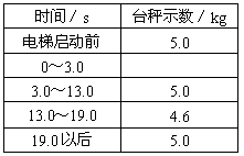 (1)电梯在0-3.0s时间段内台秤的示数应该是多少?
