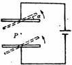 如图所示,两平行金属板水平放置并接到电源上一个带电微粒P位于两板间,恰好平衡,现用外力将P固定住后固定导线各接点,使两板均转过a角,如图中虚线所示,再撤去外力,则P在两板间:( )
