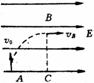如图所示,一质量为m,带电量为q的正电微粒,以垂直于电场方向的速度v0竖直向上进入一个匀强电场,经过一段时间后,带电粒子速度vB与场强方向平行,若AC=BC,则vB=_____,电势差UAC=_________。