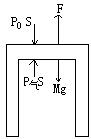 封有空气的圆型气缸挂在测力计上,测力计的示数为F,已知气缸的质量为M。截面积为S,活塞质量为m,大气压强为P0,活塞与气缸壁摩擦不计,则气缸内气体压强为: