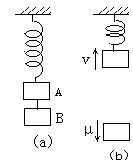 8.物体A和B用轻绳相连挂在轻弹簧下静止不动,如图a,A的质量为m,B的质量为M.当连接A、B的绳突然断 开后,物体A上升经某一位置时的速度大小为v,这时物体B的下落速度大小为u,如图b.在这段时间  里,弹簧的弹力对物体A的冲量为                  [  ]