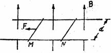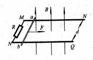 两根互相平行、间距为d的金属导轨水平放在匀强磁场中,磁场方向竖直向上,磁感应强度为B。如图14所示,导轨上放有M、N两根细金属棒,它们的总电阻为R,导轨电阻不计。棒M受水平拉力F,使两棒都作匀速直线运动, 图14
