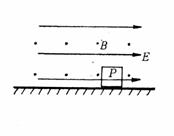 如图15所示,水平绝缘板上有一个质量为m,带-q电荷的物体P,足够大的空间存在着方向水平向右的匀强电场和垂直于纸面向外的匀强磁场,场强大小分别为E和B。开始时P被外力固定住,撤去外力,它将开始在平板上运动,运动过程中P与平板间的滑动摩擦系数为m,并且P的带电量