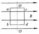 (13分)如图17,一个矩形闭合线圈abcd的边长分别为l1和l2,匝数为n,总电阻为R,在匀强磁场中绕垂直于磁场且平行于ab边的轴OO'匀速转动,磁场的磁感强度大小为B。从图中所示位置转过900角所用时间为t。