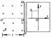 24.(14分)如图19甲所示,图的右侧MN为一竖直放置的荧光屏,O为它的中点,OO'与荧光屏垂直,且长度为l。在MN的左侧空间存在着方向水平向里的匀强电场,场强大小为E。乙图是从左边去看荧光屏得到的平面图,在荧光屏上以O为原点建立如图的直角 甲 乙