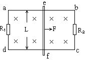 框,水平放置,金属棒ef与ab及cd边垂直,并接触良好,空间存在着匀强磁场,磁感应强度大小为B,方向竖直向下,已知电阻R1=2R,R3=3R,其它部分的电阻都可忽略不计,ab及cd边相距为L.给ef棒施加一个跟棒垂直的恒力F,求