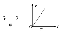 如图甲是某电场中的一条电场线,a、b是这条线上的两点。若将一负点电荷从a点由静止释放,负电荷只受电场力作用,沿电场线从a运动到b。在这过程中,电荷的速度-时间图线如图乙所示。比较a、b两点电势的高低和场强的大小